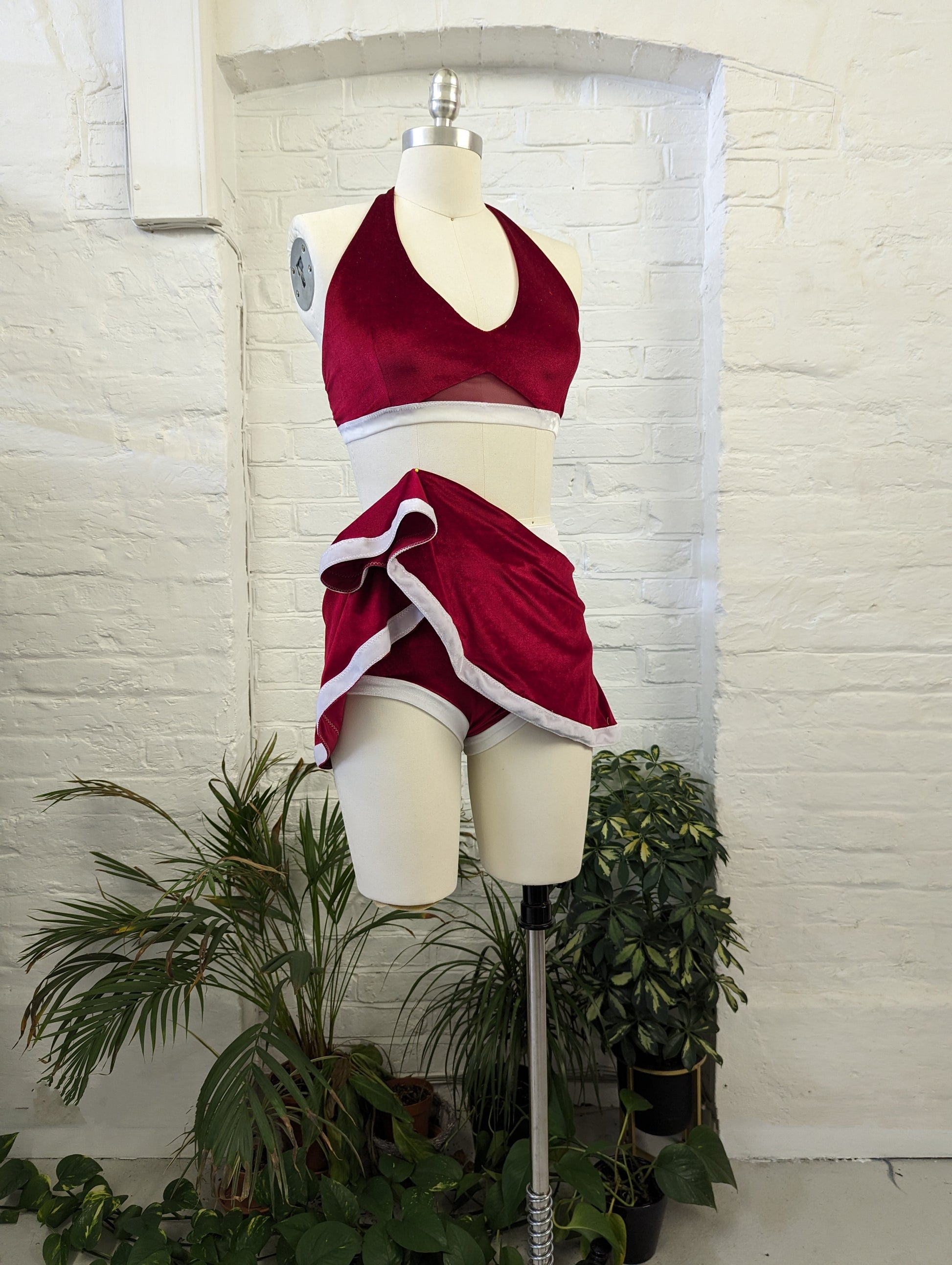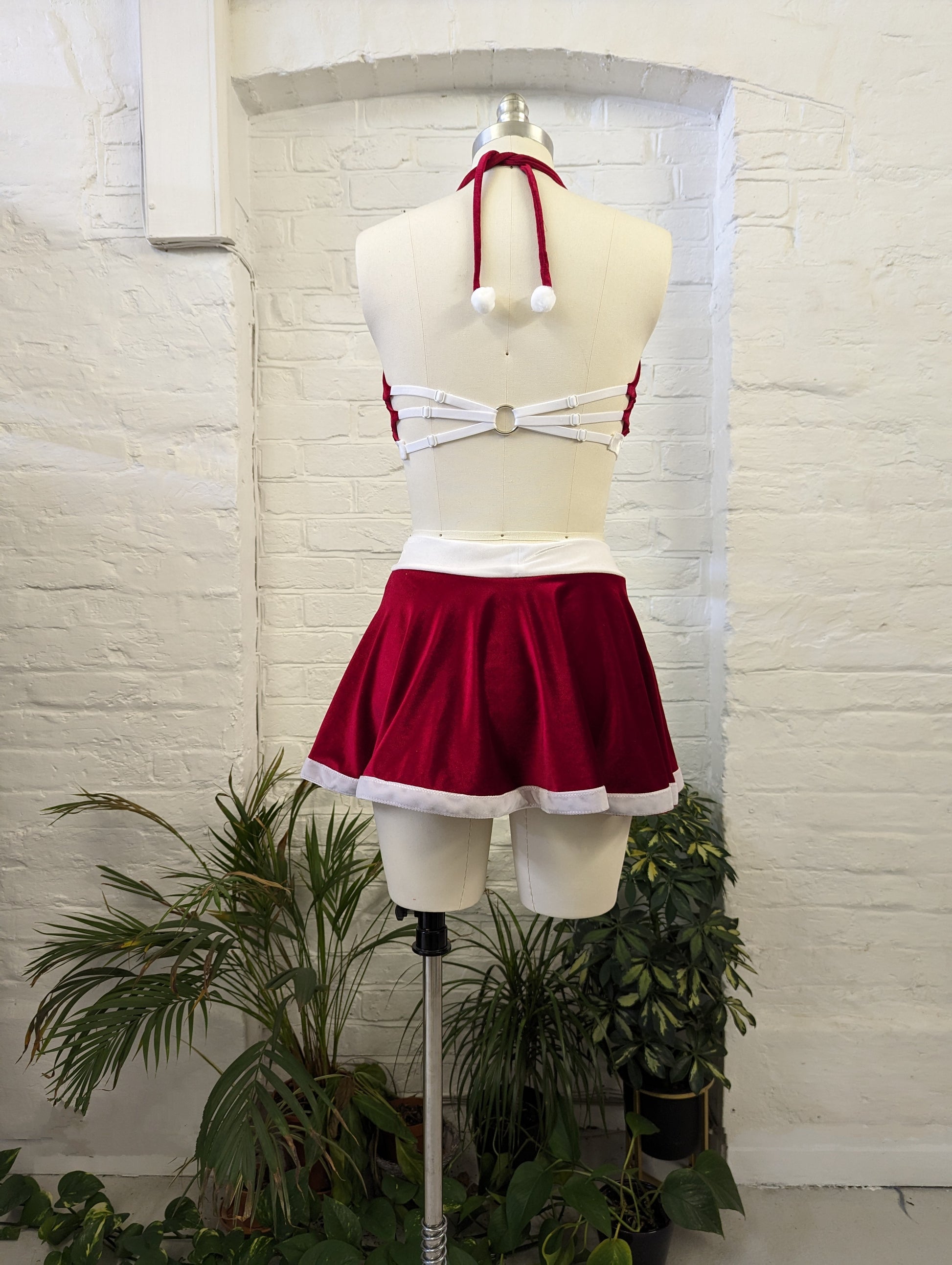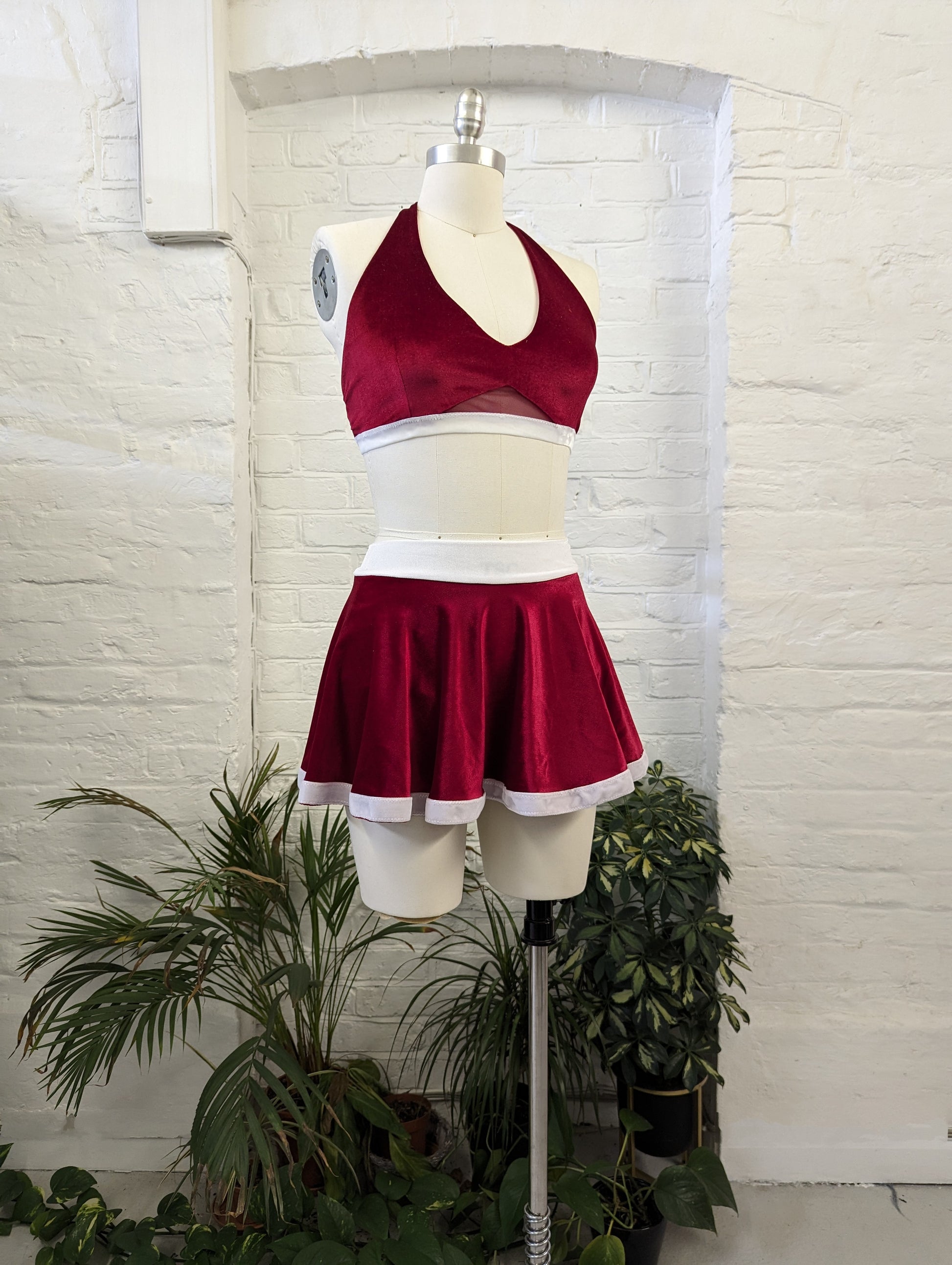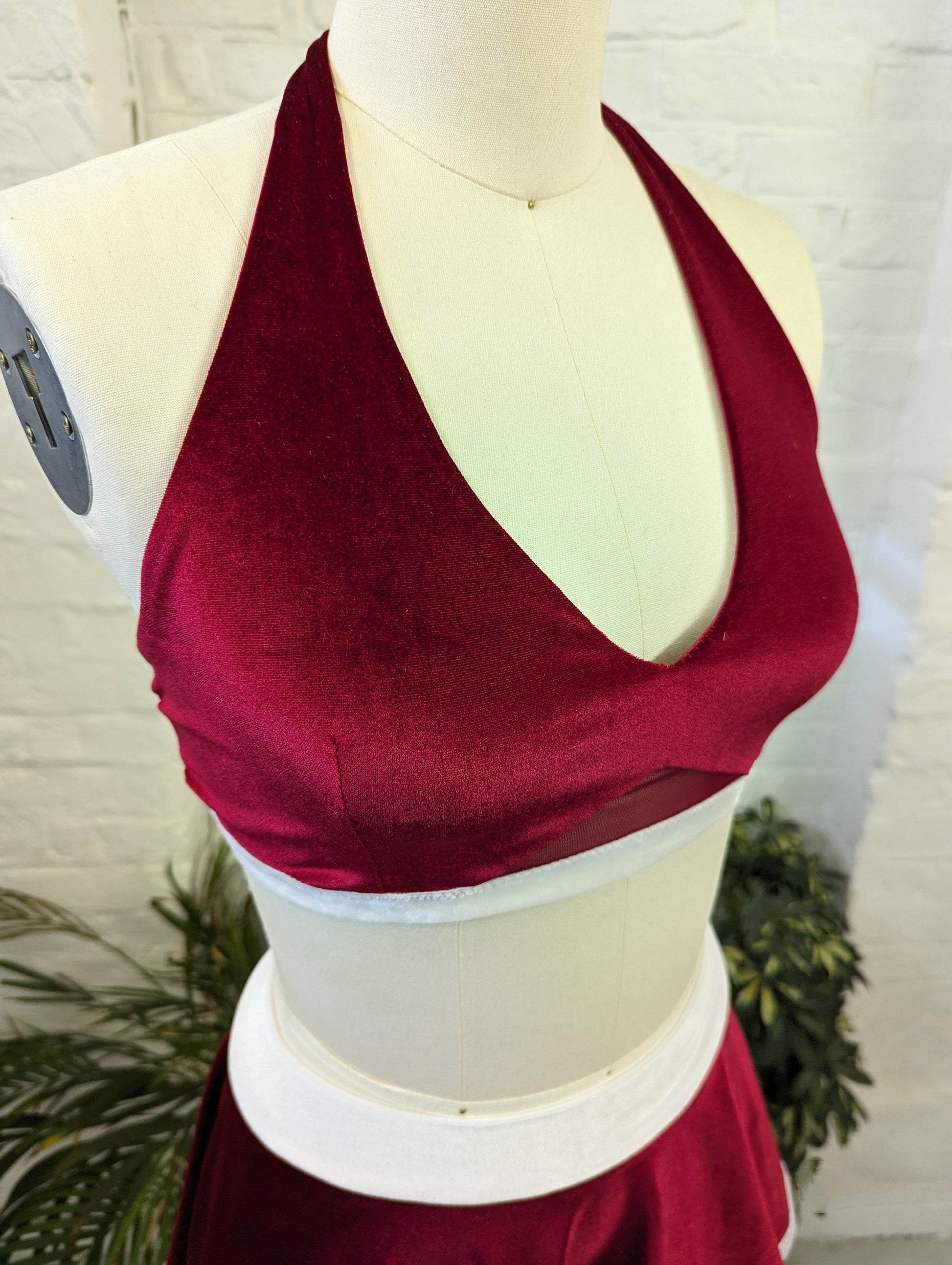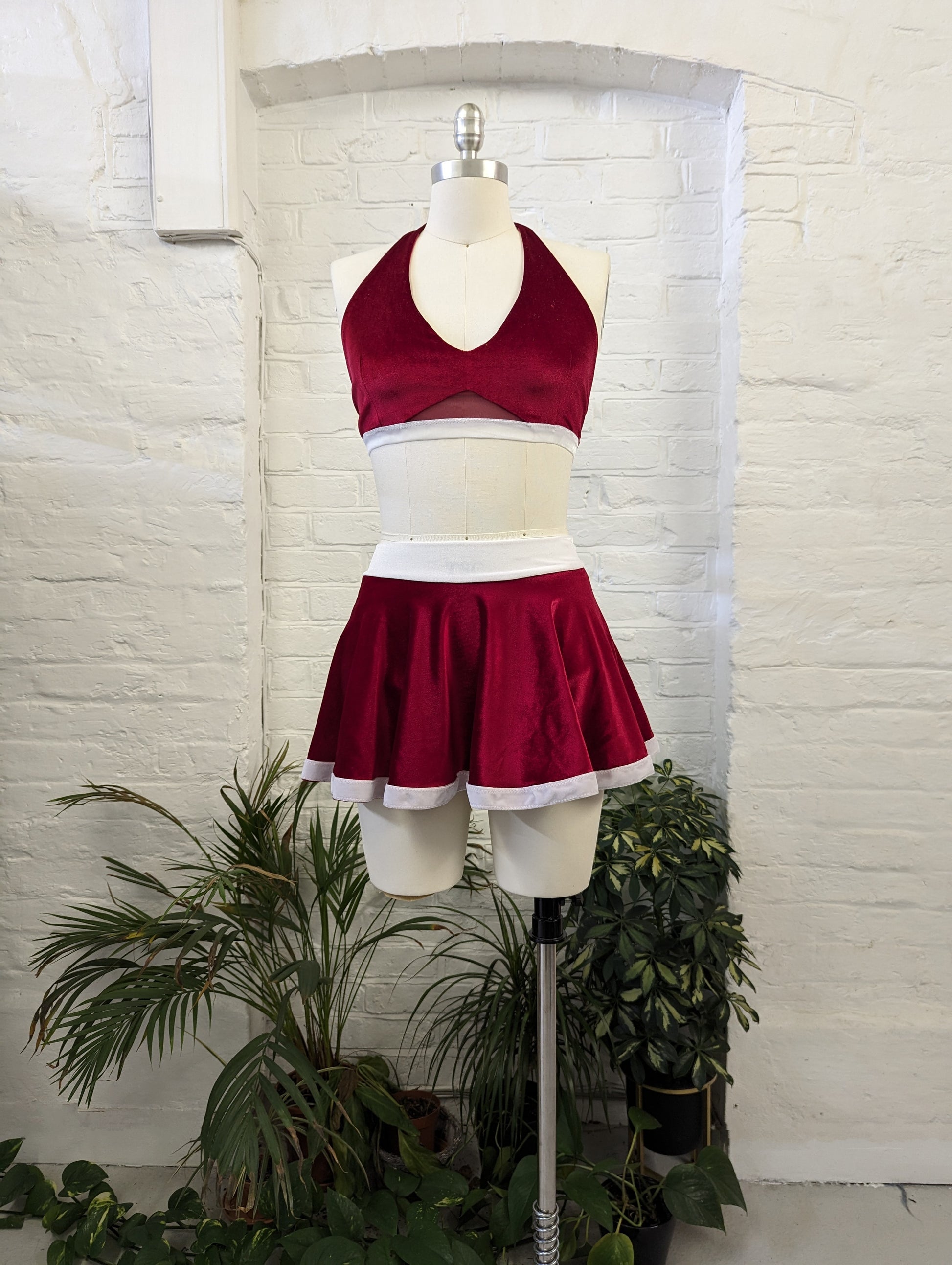 A gorgeous velvet two piece perfect for Christmas! Tie neck halter and adjustable straps allows for a customisable fit and the skirt has built in shorts.